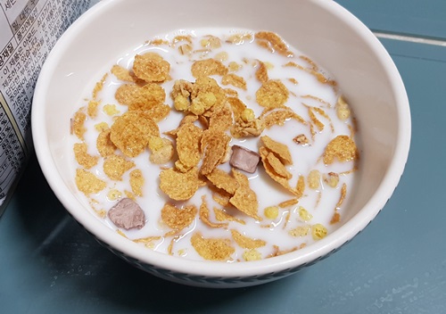 그렇게 7시가 되자마자 저는 빈속을 달래려 우유와 씨리얼을 준비했습니다. 사실...밥을 먹거나 샐러드 먹는 것이 좋겠지만 그냥 12시간 안에 먹고 싶은 거 다 먹는게 이번 간헐적 단식의 계획입니다. : )