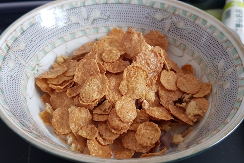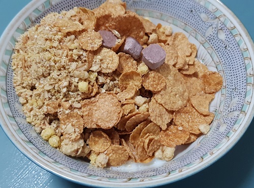 2일차 아침에 먹었던 씨리얼양보다는 좀 많아 보이죠? 현미 그래놀라 거의 다 먹고 이것만 남아있어서 그냥 다 넣어 버렸습니다. 그랬더니 우유양이 모잘라서 뭔가 죽같은 느낌으로 씨리얼을 먹었습니다. 맛은 똑같은데 뭔가 맛없는 그런 느낌이 들었어요. 이제 슬슬 씨리얼이 질리고 있는 중인 것 같습니다.