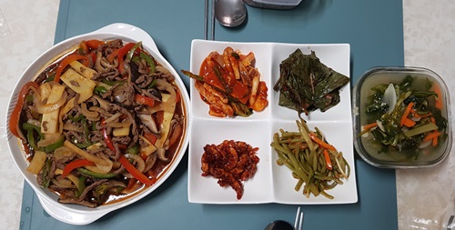 점심은 그냥 평소 먹던 반찬으로 먹었습니다. 아들 방학동안 점심은 그래도 안굶고 챙겨 먹을 수 있었습니다. 1일차 점심엔 좀 심히 무리했는데 2일차엔 천천히 먹을려고도 노력했고 좀 더 적게 먹을려고도 노력했습니다.