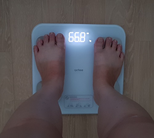 5일차에는 드디어 66키로대에 들어갔습니다. 그런데 이 몸무게가 맞는건지 의심이 들기 시작했습니다. 왜냐하면 체중이 젤 때마다 다르게 나왔거든요. 위치를 바꿀때마다 다르고요. 과연 이게 맞는 건지...이건 6일차 몸무게로 확인해 보기로 했습니다.