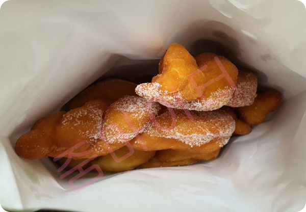 병원 근처에 있는 시장에서 꽈배기와 찹쌀..