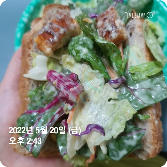 야채에 통밀식빵을 먹었거든요.