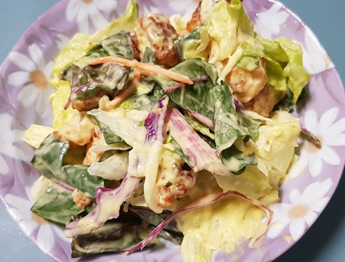 오늘 아침은 케이준 치킨샐러드를 만들어서 먹었습니다. 남편이 먹고 남은 거를 제가 먹었는데요. 아침에 몸무게를 잰 후 충격받아서 씨리얼은 저 구석탱이로 밀어뒀습니다. 그리고 남편이 먹고 남긴 치킨샐러드를 먹었습니다.
